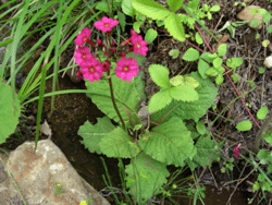 昨日入笠湿原へ行って、今花盛りのクリンソウを見てきたところですが、なんと庭の片隅にそのクリンソウ が自生しているのを発見しました。 わき出ている地下水を処理するため、敷地の周りに溝を掘っています。梅雨時の雨で水量が増している のですが、その溝にクリンソウが自生していました。てっきり湿原にしか咲かない花だと思っていたのです が、こんなところにでも咲くのですね。入笠山へ行ったときにでも種が靴についてきたのでしょうか。いずれ にしても、また楽しみが増えました。