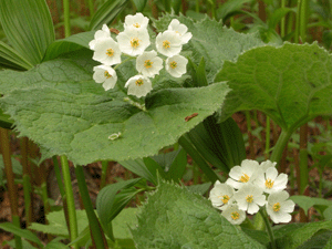 | サンカヨウが群落を作っていました。 | ツバメオモトがところどころ咲いていました。 | ||||||||||||||||